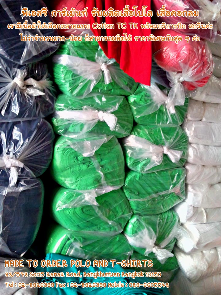 เสื้อโปโล เสื้อคอกลม ผ้าจูติ TK TC CVC Cotton พร้อม สกรีน ปักโลโก้ บริษัท ราชการ งานด่วนแจ้งได้ค่ะ พี เอส ซี การ์เม้นท์ ผลิตสินค้า ประเภท เสื้อโปโล และ เสื้อยืดคอกลม ในแบบต่าง ๆ ค่ะ