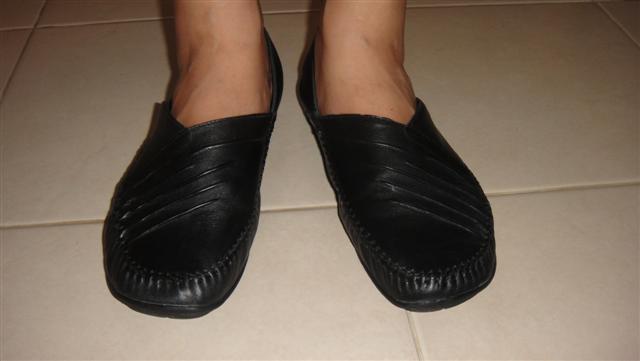 รองเท้าสวม หนังสีดำ ส้นเตี้ย สวมใส่สบาย No.6 หรือประมาณ 38-39 ราคาพร้อมส่ง