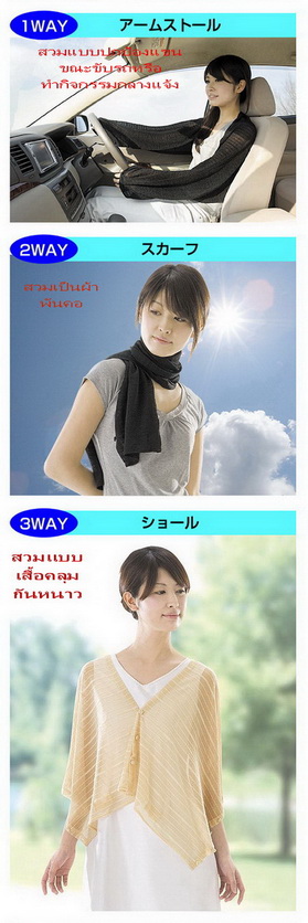 3 ways : 1. เสื้อคลุมกันแดด 2. เสื้อคลุมกันเย็น 3. ผ้าพันคอ