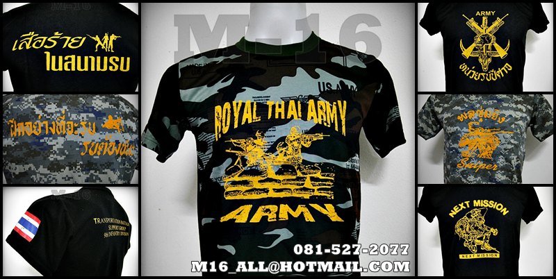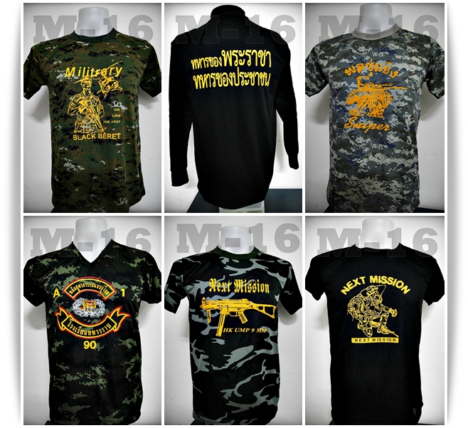 ร้าน M16THAILAND ขายส่ง เสื้อยืดทหาร มีลายให้เลือกหลากหลาย พร้อมรับสั่งทำ รับสกรีน ขายส่งอุปกรณ์ทางทหารอื่ืนๆ อีกมากมาย