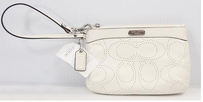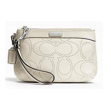 กระเป๋าสตางค์คล้องแขน หนังแท้จาก COACH รุ่นWHITE SILVER PERFORATED LEATHER MEDIUM WRISTLET PURSE BAG F47330