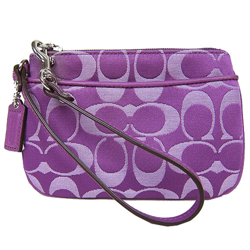 กระเป๋าสตางค์คล้องแขน COACH สีม่วงลาย Signature รุ่น F48372