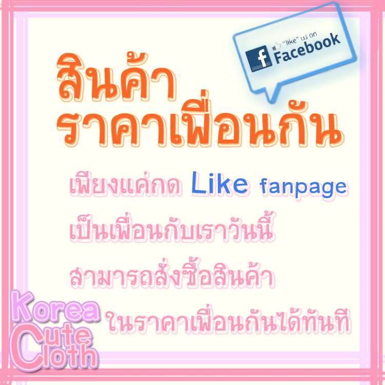 เพียงแค่กด Like fanpage เป็นเพื่อนกับเราวันนี้ สามารถสั่งซื้อสินค้าในราคาเพื่อนกันได้ทันที