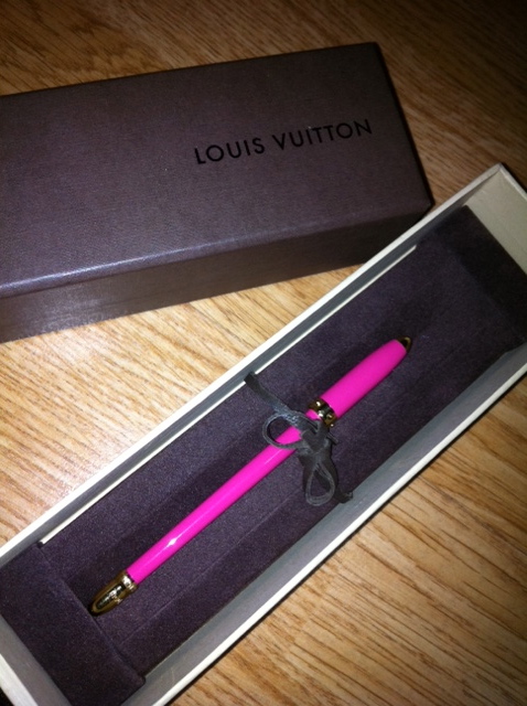 Authentic Louis Vuitton Pink Ball Point Agenda Pen This Authentic Louis Vuitton Pink Ball Point Agenda Pen Item Number: MAL33752768 Model: Louis Vuitton Authentic Louis Vuitton small agenda pen with black ink. Perfect fit on small LV agendas. LOUIS VUITTON Made in France is engraved at the bottom. Simply twist the pen top for the refill to come out and you are ready to write Very cute item Don't miss out Size app 4.3" or 11 cm long. Measurements: app 4.3" or 11 cm long. ซื้อมา ยังไม่ได้ใช้เลยคะ แค่เคยลองหมึกบนกระดาษ แล้วเก็บเข้ากล่องคะ not including shipping fee