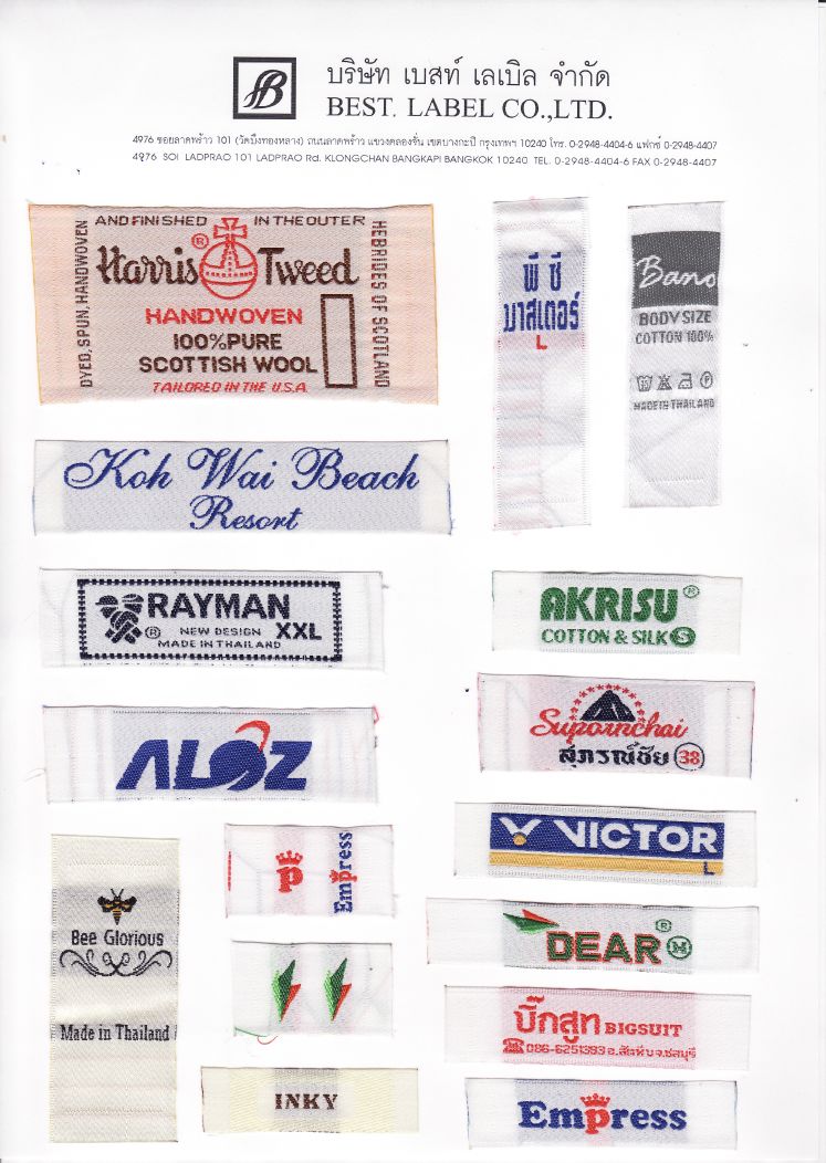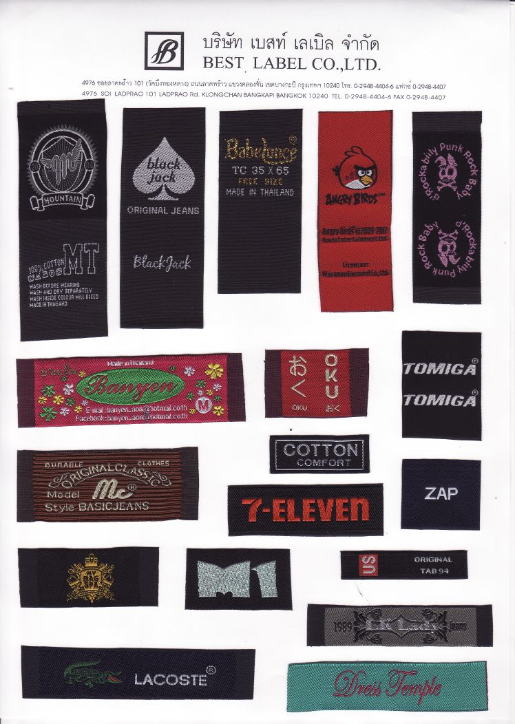 รับผลิต ป้ายตราเสื้อ ป้ายทอ ป้ายพิมพ์ ป้่าย label พิมพ์ลายบนผ้าก้างปลา ป้ายคอเสื้อ ป้ายริบบิ้นพิมพ์ ผลิตตามแบบ หรือ ออกแบบให้ก็ได้ ส่งงานตรงเวลา เพราะเราเป็นโรงงานผลิต ไม่ได้ส่งงาน ต่อที่อื่นจึงสามารถระบุวันรับงานได้ตรงเวลา มีพนักงานออกไปรับงานและบริการส่งงานตามที่กำหนด โทร. 0873588277