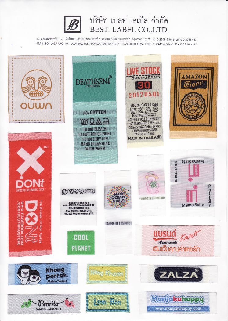 รับผลิต ป้ายตราเสื้อ ป้ายทอ ป้ายพิมพ์ ป้่าย label พิมพ์ลายบนผ้าก้างปลา ราคาโรงงาน