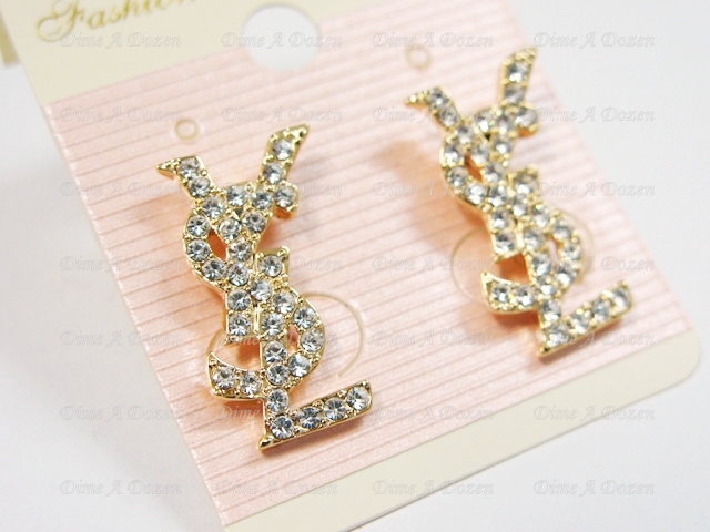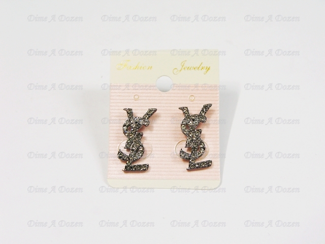 ต่างหูแป้น YSL สีดำควันบุหรี่ฝังคริสตัลสีควันบุหรี่