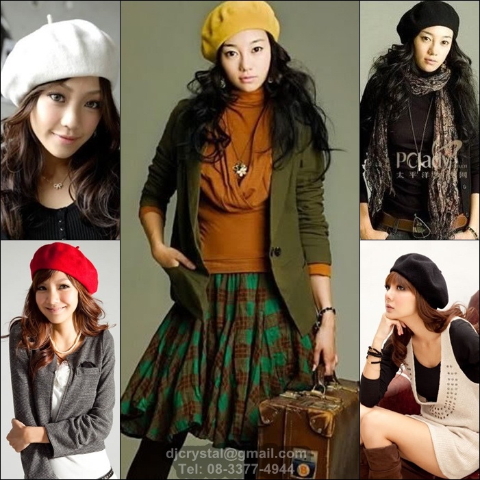 หมวกแฟชั่นเกาหลีผ้า wool มีให้เลือกถึง 10 สี