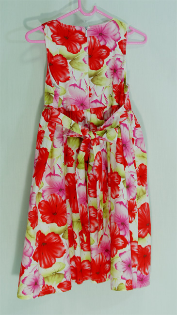 ชุดเดรสลายดอกไม้โทนสีแดง-ชมพู กระโปรงบานมีซับด้านใน