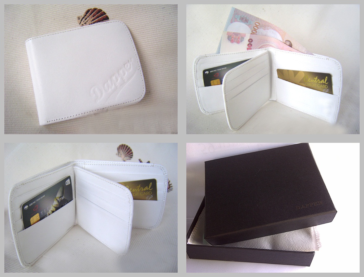ขายกระเป๋าสตางค์ Dapper สีขาว 1 ใบคะ หนังแท้ และของแท้ พร้อมกล่องและซองและป้ายยี่ห้อคะ