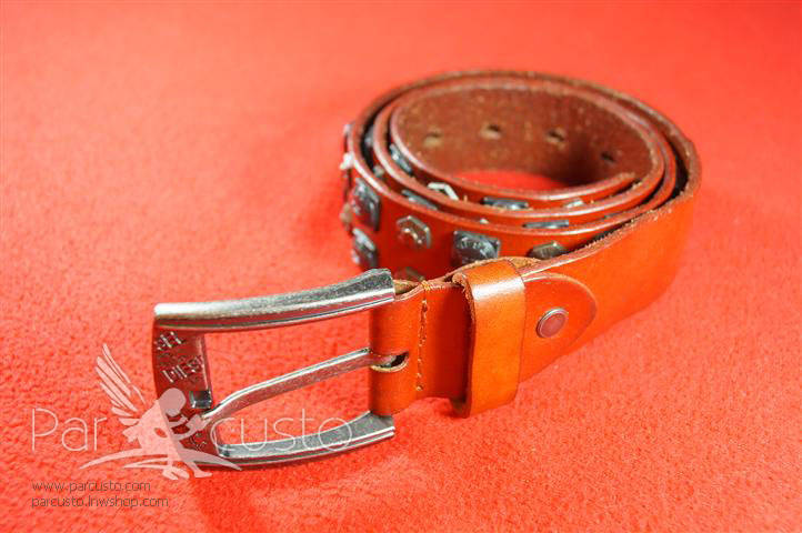 เข็มขัด Dieselแท้ รุ่น Classics Since1978 Style Cowboy/Punk หัวเข็มขัดเขียนว่า Classics Diesel Since 1978 ด้านล่างมีรูปหัวคนไว้ผมทรงโมฮอกซ์ เขียนอักษรว่า BRAVE DIESEL สายหนังสีน้ำตาลแดง มีกระดุมหัวกลมสลับกับหัวหกเหลี่ยมเรียงรายกัน 30 คู่ (แค่กระดุมก็คุ้มแล้ว) สายกว้าง 1.5 นิ้ว ยาว 39 นิ้ว สภาพดีมาก