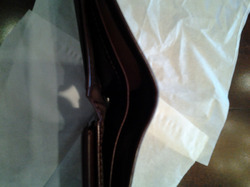 ขายกระเป๋าสตางค์มือสอง Ragazze ของแท้แน่นอน สีน้ำตาลเข้ม แบบพับครึ่ง ด้านในมีช่องใส่บัตร 4 ช่อง + ช่องใส่เหรียญ + ช่องใส่แบงก์ 2 ช่อง ยี่ห้อ Ragazze การันตีคุณภาพหนังในตัว ซื้อมาจาก shop ราคา 1,650
