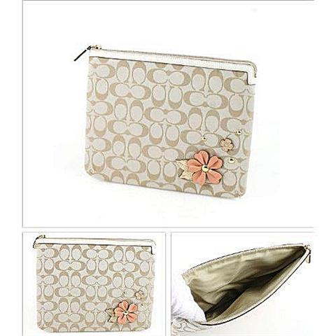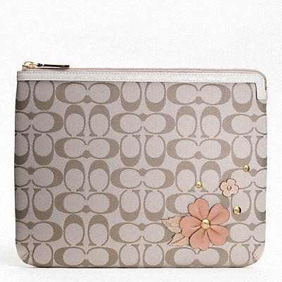 ปกป้อง IPAD/TABLET สุดโปรดของคุณ ด้วย IPAD CASE ของ COACH รุ่น Pink Khaki Multi FLOWER APPLIQUE iPad/Tablet Sleeve F61609