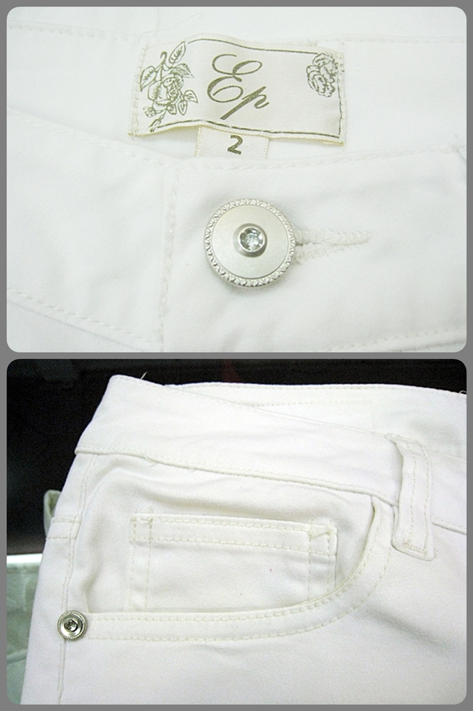 กางเกงขายาว brand EP ทรงเดฟ (แต่ไม่เดฟมาก) สีขาวออฟไวท์ กระเป๋าหน้า 2 ข้างและกระเป๋าหลัง กระดุมฝังด้วยคริสตัล สวยมากค่ะ ไซส์ 2 (M) เอว 28 นิ้ว / สะโพก 36 นิ้ว / ความยาว 36 นิ้ว ขายต่อเพียง 320 รวมส่งค่ะ ติดต่อทางอีเมล์ได้เลยจ้า รบกวนแจ้งนิดนึงว่ามาจากประกาศใน thaisecondhand นะคะ