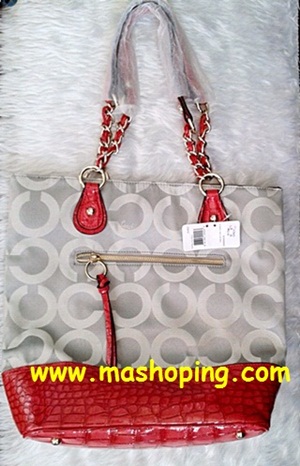 -- Collection ใหม่ล่าสุด กระเป่า Coach ผ้าทอลาย Original มาพร้อมลวดลวยหนังแท้ตีลายจระเข้ สีแดง สวยมากมาย ตามแบบฉบับ ของ Coach