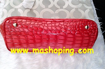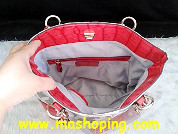 -- งานอะไหล่ทองขึ้นเงา หูกระเป๋าสะพายประดับด้วยหนังแท้ตีลายจระเข้ สีแดง สวยมากค่ะ