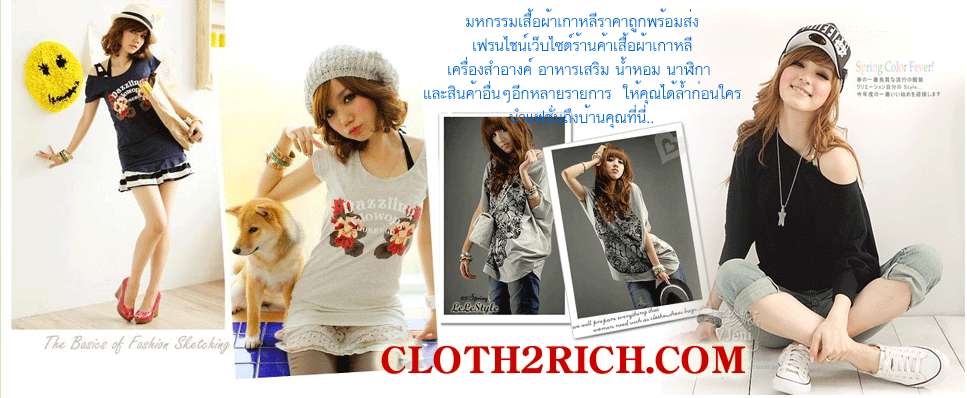 เสื้อผ้าสินค้านำเข้าจากเกาหลี ราคาถูกสุดๆคุ้มยิ่งกว่าคุ้ม ห้ามพลาด!! ธุรกิจเสื้อผ้า นำเข้าจากเกาหลีแฟชั่นใหม่อินเทรนด์ไม่ซ้ำใคร มหกรรมเสื้อผ้าเกาหลีราคาถูกพร้อมส่ง เฟรนไชน์เว็บไซต์ร้านค้าเสื้อผ้าเกาหลี เครื่องสำอางค์ อาหารเสริม น้ำหอม นาฬิกา และสินค้าอื่นๆอีกหลายรายการ ให้คุณได้ล้ำก่อนใคร นำแฟชั่นถึงบ้านคุณที่นี่ เว็บร้านค้า: http://www.cloth2rich.com/cloth.asp?cid=13828