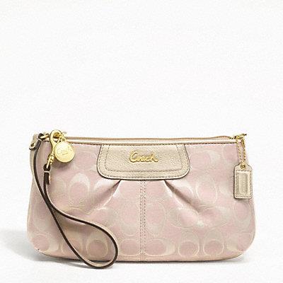 กระเป๋าสตางค์คล้องแขน COACH รุ่น F47524 สีชมพูหายากคะ Signature COACH ด้านหน้ามีอักษรคำว่า “COACH” ตัวนูนสีทอง สายคล้องแขนเป็นสายหนังสีทอง