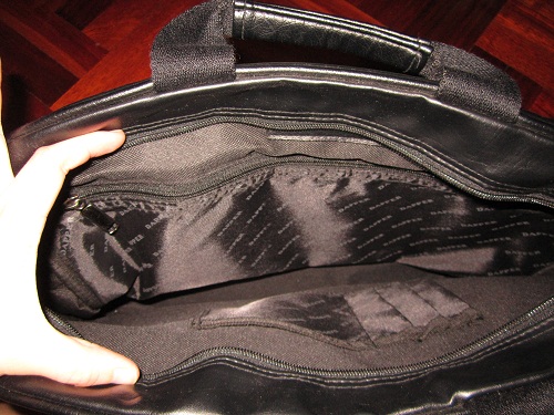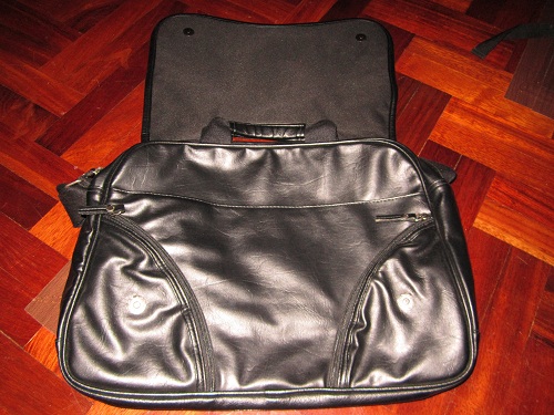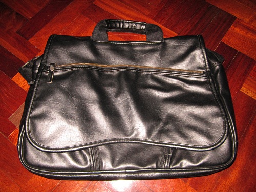 กระเป๋าเอกสาร Dapper เป็นหนัง สายสะพายไหล่เป็นผ้าสีดำ