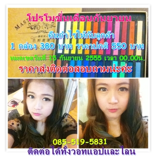 ด่วนสินค้าโปรโมชั่นมีจำนวนจำกัดค่ะ รับรองสีสวยติดทนถึง 3 วัน และที่สำคัญผมไม่เสียอีกด้วย (สามารถซื้อให้เป็นของขวัญกับคนที่คุณรักก็ได้ค่ะ)