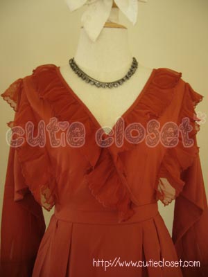 จัมพ์สูทหรือชุดหมีผ้าจอร์เจียตกแต่งชีฟองสีแดงเลือดหมู LANDMEE