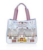 กระเป๋าสะพายไหล่ Harrods (Shoulder Bag) ขนาด H30cm x W37cm x D12cm; handle drop 22cm มีกระดุมแม่เหล็กปิดกระเป๋า ออกแบบลายเฉลิมฉลอง พระนางเจ้าอลิซาเบซแห่งอังกฤษครองราชย์ครบ 60 ปี ทำจากผ้า Cotton เคลือบพลาสติก PVC สามารถเช็ดทำความสะอาดได้ง่าย