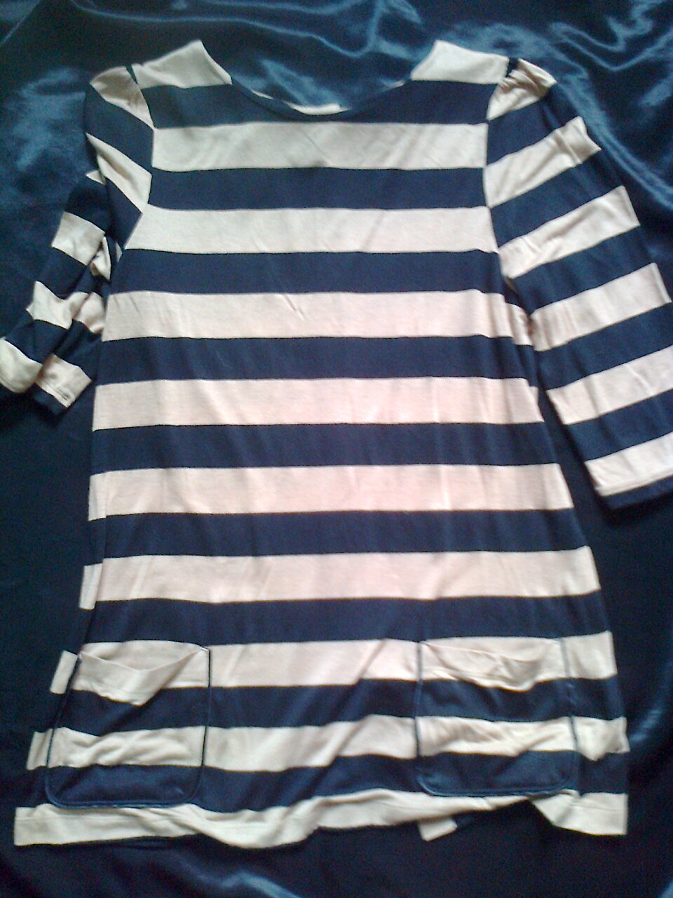 เสื้อยืดลายขวาง สีน้ำตาลอ่อน-ดำ เเขนสามส่วนตัวยาว ด้านหังเป็นกระดุม ผ้านิ่มมาก แบบเก๋ค่ะ ใส่สบายค่ะจะใส่เป็นเดรสสั้นก็เก๋ดีน่ะค่ะ