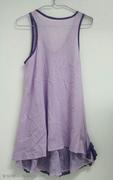 เดรสกระโปรงแขนกุดสีม่วง ช่วงปลายกระโปรงจะมีดอกไม้สีม่วงประดับอยู่ ยาวประมาณ 32 นิ้ว ราคา 180 บาท