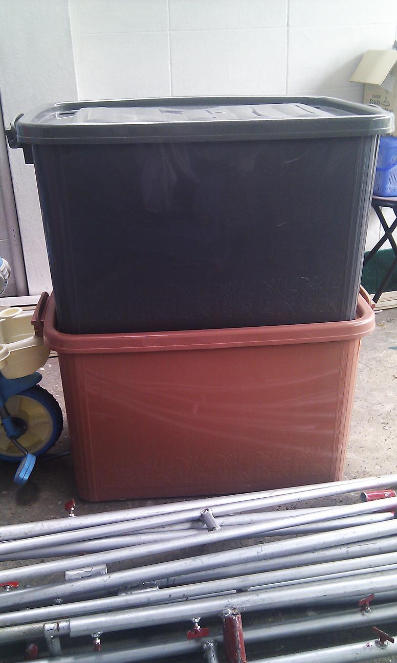 6. ลังพลาสติกอย่างดีขนาดใหญ่สำหรับเก็บผ้า 2 ลัง (มีล้อเลื่อน)