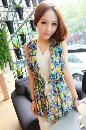 เสื้อแขนกุดคอวี ตัดต่อผ้าด้านหน้า เย็บจั้มเอว สวยๆ ขนาด: รอบอก 82cm ความยาว 64cm