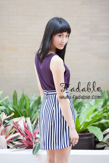 กระโปรงทรงเอ ลายริ้วสีขาวกลม งานเย็บเองเต็มที่กับคุณภาพเนื้อผ้า