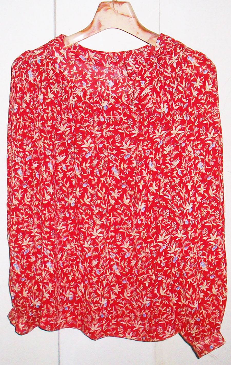 เสื้อชีฟองลายดอกไม้สไตล์vintage พื้นเสื้อสีแดง ลายดอกสีครีมสลับฟ้าอ่อน พริ้นลายองุ่นสวยมาก คอปาดผูกโบว์ที่คอเสื้อด้านข้าง รอบอก 37 นิ้ว ฟรีค่าขนส่ง สนใจสั่งซื้อโอนเงินผ่านธนาคารกรุงไทย สาขา ย่อยปุณณกัณฑ์ เลขที่บัญชี 879-0-06406-2 ***โอนเงินแล้วกรุณา smsมาแจ้งชื่อ ที่อยู่ในการจัดส่งสินค้าด้วยค่ะ***