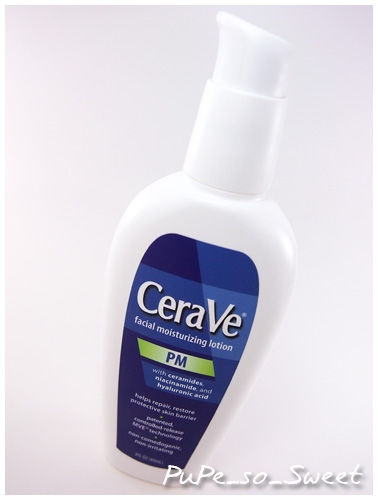 CeraVe : Facial Moisturizing Lotion PM (89 ml) ตัวนี้ปูเป้สั่งมาจากอเมริกา (ไม่มีขายในไทย) ในเนื้อโลชั่นที่ให้ความชุ่มชื้นได้ดี ไม่หนักผิว (แต่ก็ไม่ Matte นะจ๊ะ) เหมาะกับทุกสภาพผิวแม้แต่ผิวเป็นสิวก็ตาม มีส่วนผสมของ Ceramide ถึงสามชนิด กับ Hyaluronic Acid และ Cholesterol ที่ช่วยเสริมความแข็งแรงให้กับผิวชั้นนอก Phytosphingosine ช่วยลดการอักเสบและมีคุณสมบัติในการต้านเชื้อแบคทีเรียให้ผิวได้ ทีเด็ดกว่านี้คือมีส่วนผสมของ Niacinamide โดยกะได้ว่าน่าจะอยู่ที่ 2% เพราะความเข้มข้นระดับนี้มีการศึกษาแล้วว่าจะช่วยเพิ่มระดับ Ceramide ในผิวได้เมื่อใช้ต่อเนื่อง