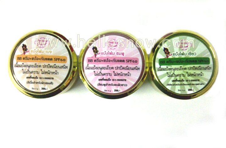 สุดยอดแป้งเนื้อมูสดีกว่าbbเกาหลีแบบเดิมๆ 10 เท่าหน้าสวยขาวใสเหมือนดาราเกาหลี ในพริบตาขายดีที่สุด สุดยอดแป้งมูสยอดนิยมสุดๆ เนื้อละเอียดน่าใช้ เป็นทั้งกันแดด SPF60 เท่ากับกันแดดทะเล เบสรองพี้น BBครีมและแป้งในตัว สูตรไร้ความมันใช้เพียงแค่วันละครั้งหน้าใสเงาเหมือนสาวเกาหลีดูเป็นธรรมชา ติไม่โบ๊ะไม่เป็นคราบตรงจมูก ไม่ว่าจะเหงื่อออกมาก ใบหน้ามัน ลงว่ายน้ำเต้นแอโรบิกก็ยังคงสภาพใสเหมือนตอนเพิ่งลงแป้งเช้าจรดเย็นเพียง ล้างหน้าด้วยโฟมหรือสบู่ก็ออกตามปกติทดสอบการกันน้ำโดยหยดน้ำบริเวณที่ทา แป้งหยดน้ำจะกลิ้งเสมือนอยู่บนใบบัวมีส่วนผสมของคาโมมายด์เหมาะสำหรับผู้ที่ มีอาการแพ้หรือระคายเคืองง่าย สไตล์เจ้าหญิงน่ารักสุด ๆช่างแต่งหน้าเกาหลีนิยมใช้ให้กับดาราชื่อดัง ลดเวลาในการแต่งหน้าไม่ต้องทากันแดดเหนียว ๆไม่ต้องรองพื้นที่ทำให้หน้าหนาทึบแล้วก็ไม่ต้องเติมแป้งบ่อยๆใช้แค่แป้ง ฝุ่นก็เด้งแล้ว ราคา 1