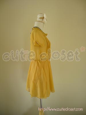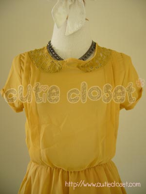 จัมพ์สูทหรือชุดหมีผ้าชีฟองตกแต่งลูกไม้สีเหลืองมัสตาร์ด style LANDMEE