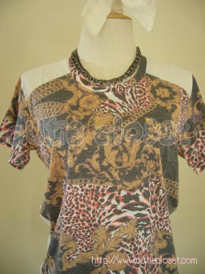 เสื้อยืดพิมพ์ลายหลุยส์ตัดต่อผ้าชีฟอง