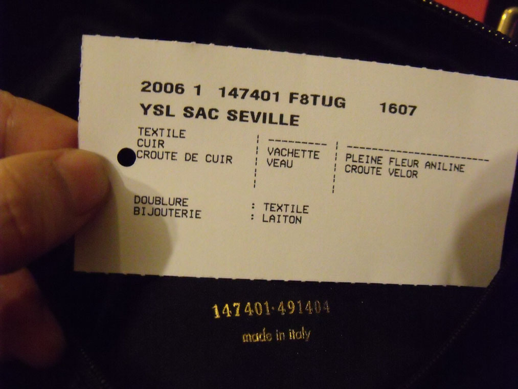 YSL authenticity card)