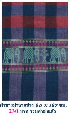 หน้ากว้างลายช้าง 80 x ยาว 187 ซม. ราคา 250 บาท/ผืน (เป็นผ้าคลุมไหล่,ผ้าพันคอ)