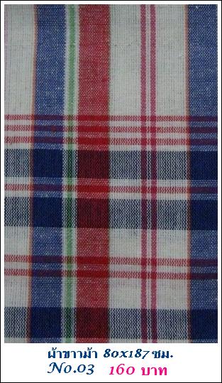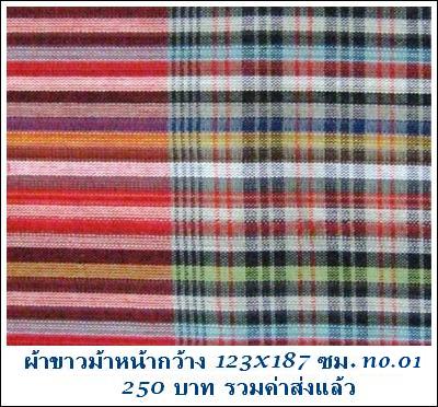 No.01-03 หน้ากว้าง 80 x ยาว 187 ซม. ราคา 160 บาท/ผืน (เป็นผ้าคลุมไหล่,ผ้าพันคอ)