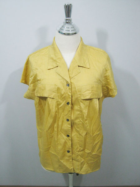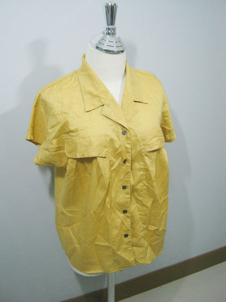 สินค้ามาใหม่ เสื้อเชิ้ต แขนสั้น คอปก สีเหลือง ใส่สบาย