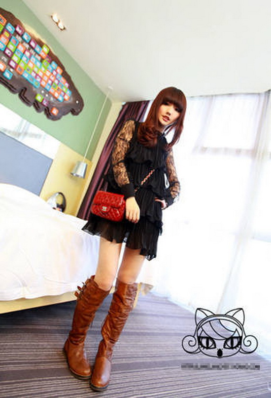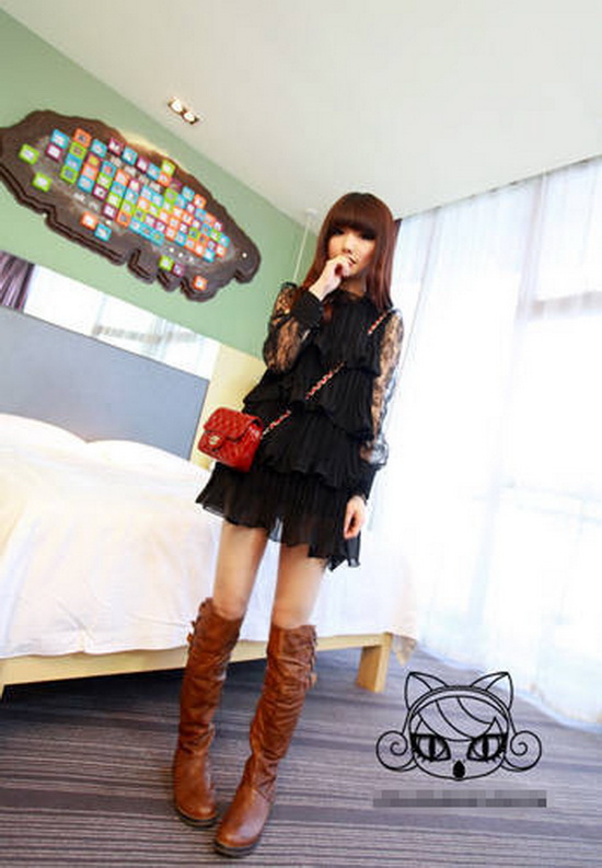 ชุดเดรสสั้นเกาหลี สีดำ ผ้าชีฟอง+ลูกไม้ วัสดุและเนื้อผ้า: ชีฟอง+ลูกไม้ สี: สีดำ ขนาด: ฟรีไซด์ รอบอก: 88cm ความยาว: 75cm แขนยาว: 54cm