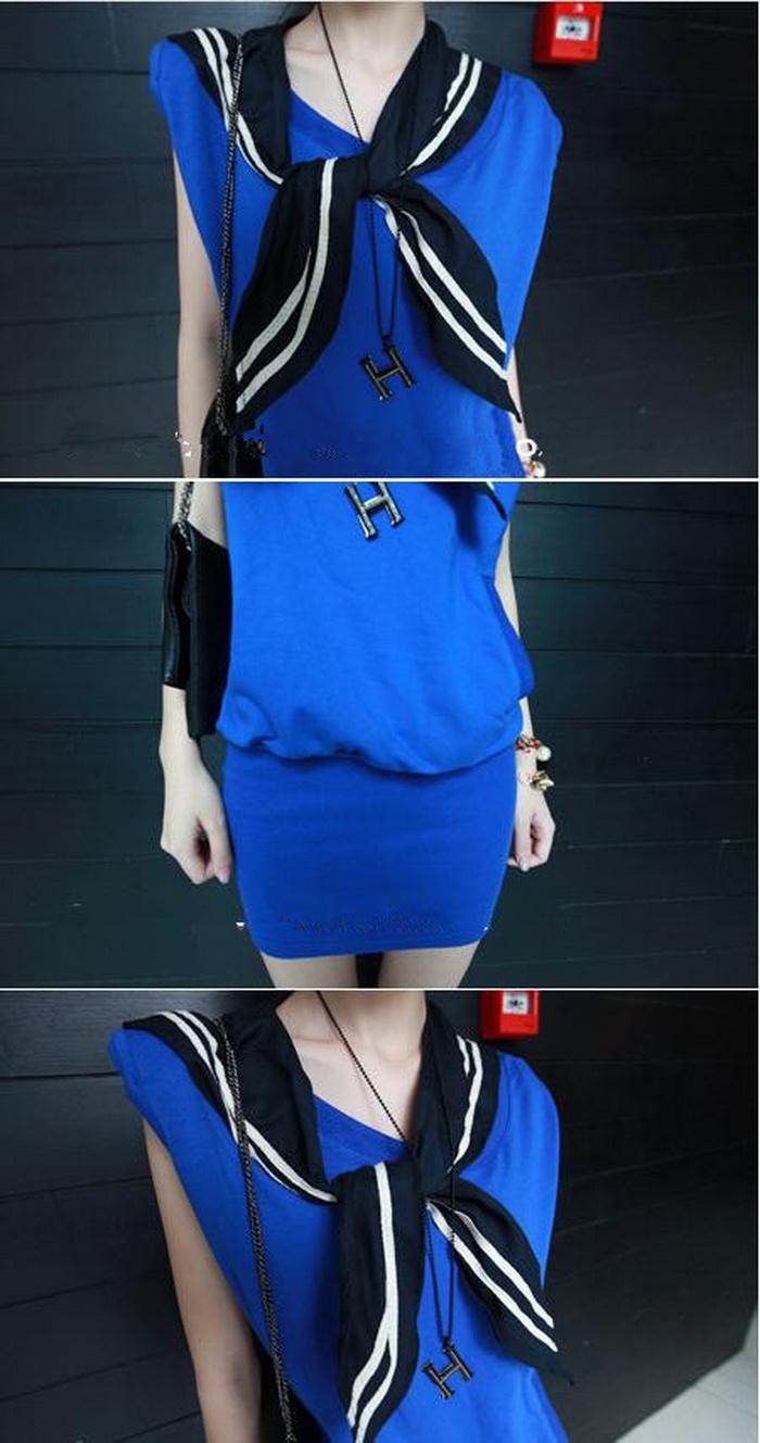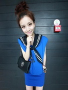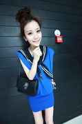 ชุดเดรสสั้นเกาหลี สีน้ำเงิน