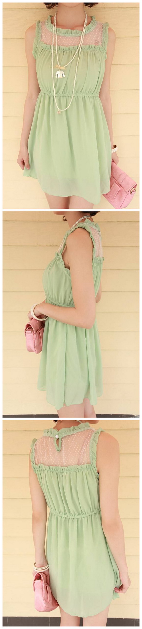 ชุดเดรสสั้นเกาหลี สีเขียว ผ้าชีฟอง วัสดุ: ตาข่าย + ชีฟอง สี: สีเขียว น้ำหนัก: 0.22kg ขนาด: ฟรีไซด์ หน้าอก : 90cm ความยาว : 78cm ไหล่ : 35cm
