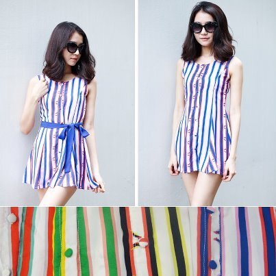 เดรสทรงเอผ้าเนื้อดีลายทาง พร้อมผ้าผูกเอว : ขายเสื้อผ้าแฟชั่น ชุดเดรส จั๊มสูท พร้อมส่งไม่ต้องรอพรีออเดอร์ บริการส่งไปรษณีย์