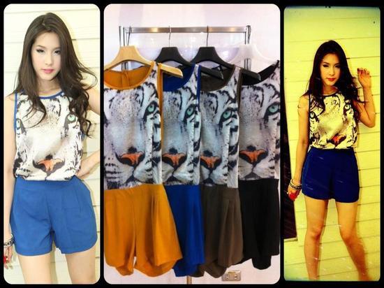 จั้มสูทลายหน้าเสือ : ขายเสื้อผ้าแฟชั่น ชุดเดรส จั๊มสูท พร้อมส่งไม่ต้องรอพรีออเดอร์ บริการส่งไปรษณีย์