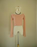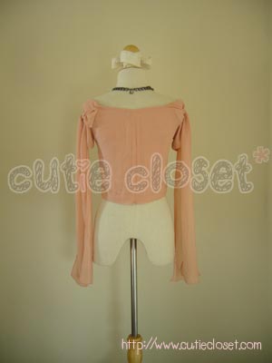 เสื้อ crop เปิดไหล่ตกแต่งโบว์ช่วงแขนผ้าชีฟองเนื้อทรายสีชมพูนู้ดสวย