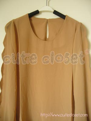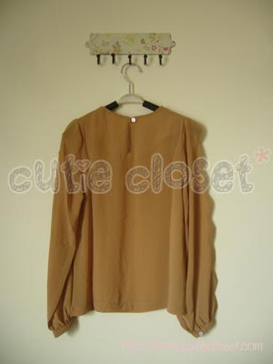 เสื้อคอกลมแขน scallop สีน้ำตาล