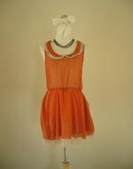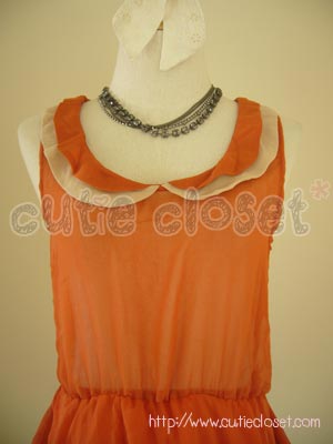 เดรสคอบัวกระโปรงสองชั้นสีส้มอิฐ