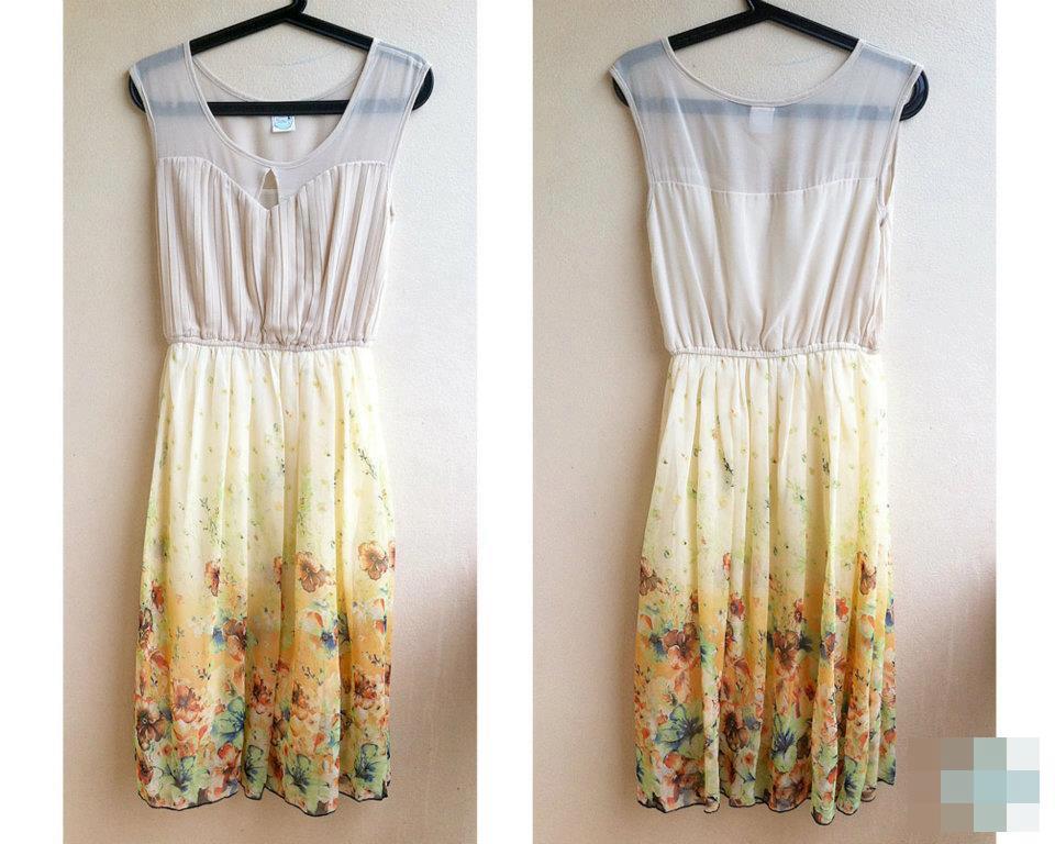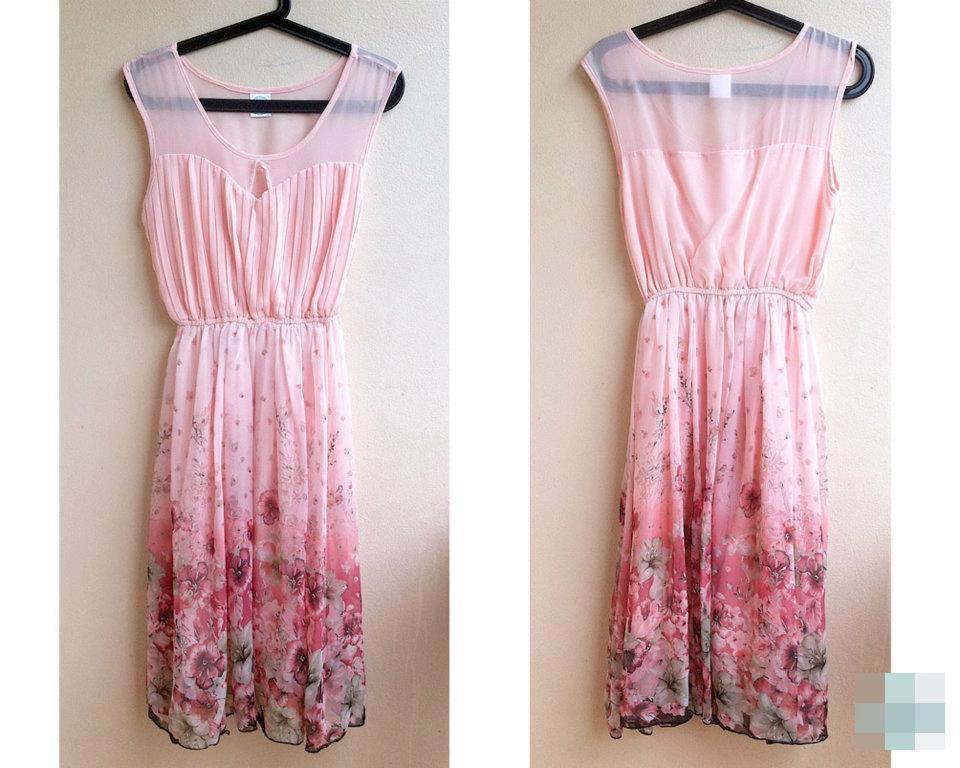 ขาย เดรสชีฟอง maxi dress ลายดอก อัดพลีทช่วงอก
