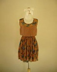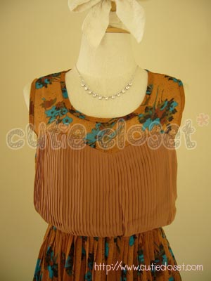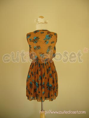 เดรสผ้าชีฟองตกแต่งพลีทกระโปรงระบายสีน้ำตาล